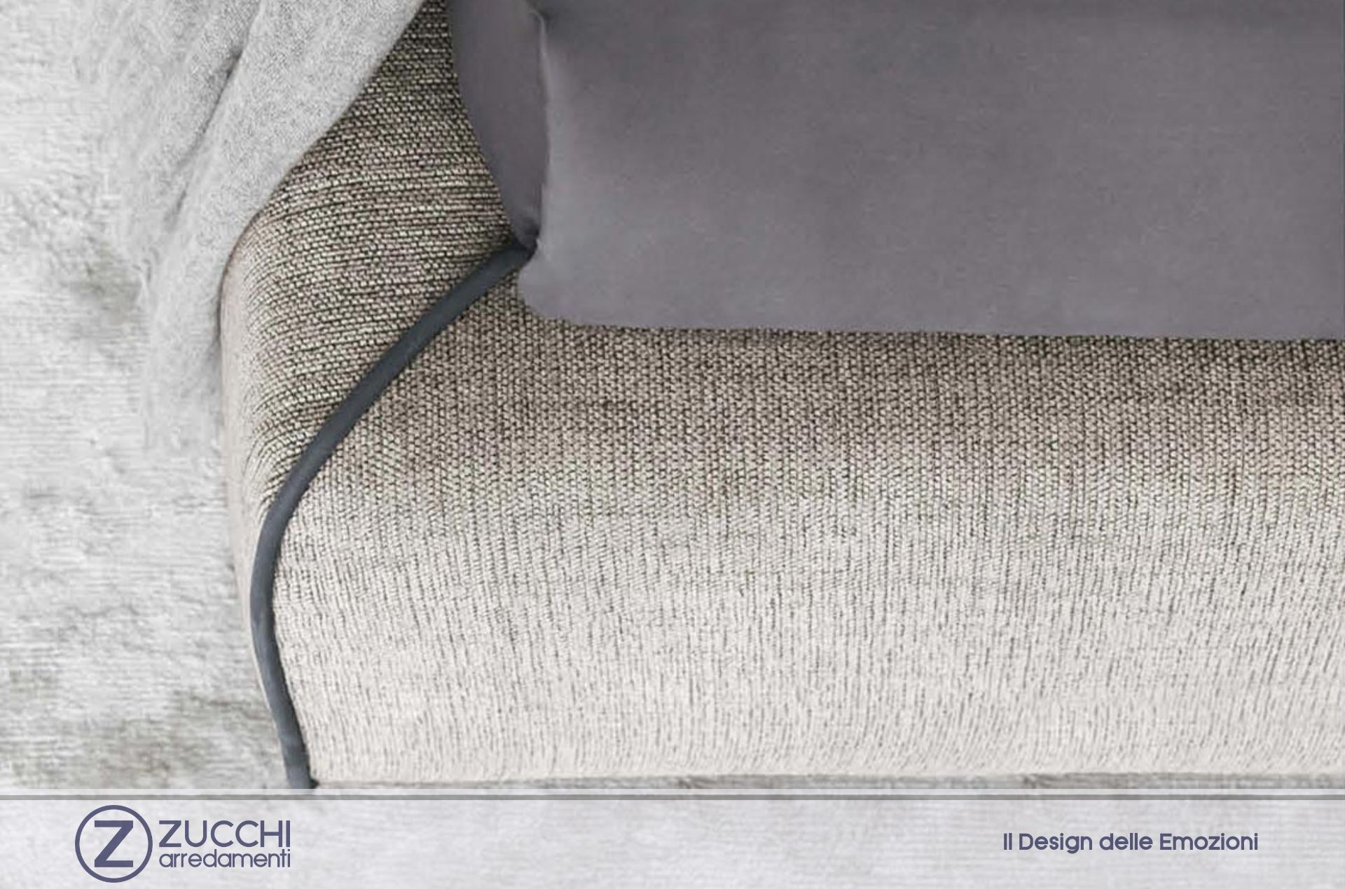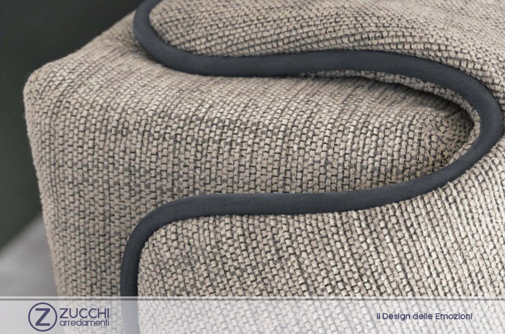 Il rivestimento è impreziosito da un cordonetto decorativo lungo gli angoli della base e lungo il perimetro della copertura superiore della testata, disponibile tono su tono oppure a contrasto, per un risultato estetico sempre equilibrato e sofisticato.